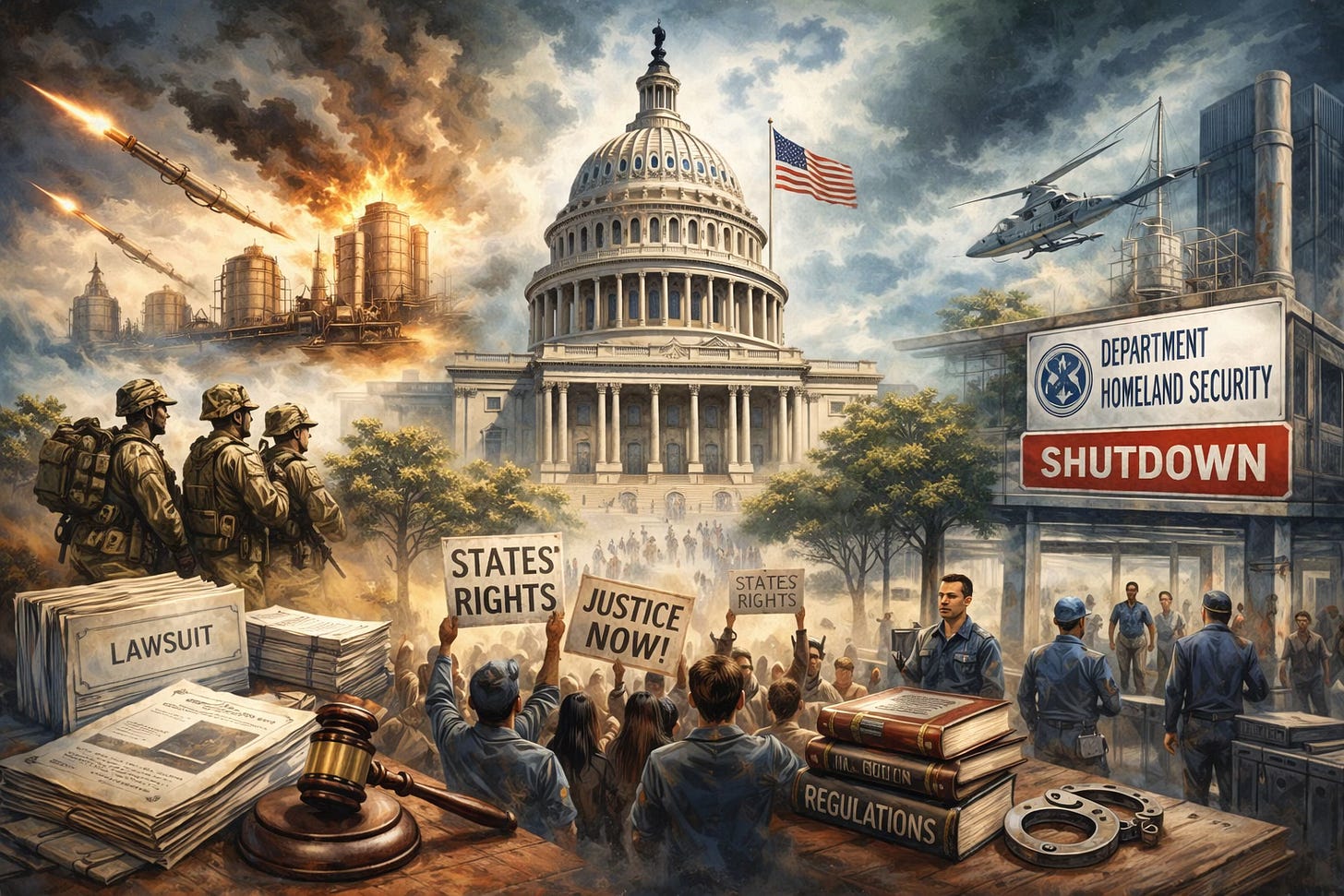 This week’s perimeter runs along two seams at once. One is domestic, a widening pattern of federal pressure that shows up through funding threats, rulemaking, and litigation posture. The other is external, the open war with Iran, which the White House is treating as proof of strength, and which will almost certainly function as a domestic attention magnet, a permission structure for exceptional measures, and a stress test for public confidence.