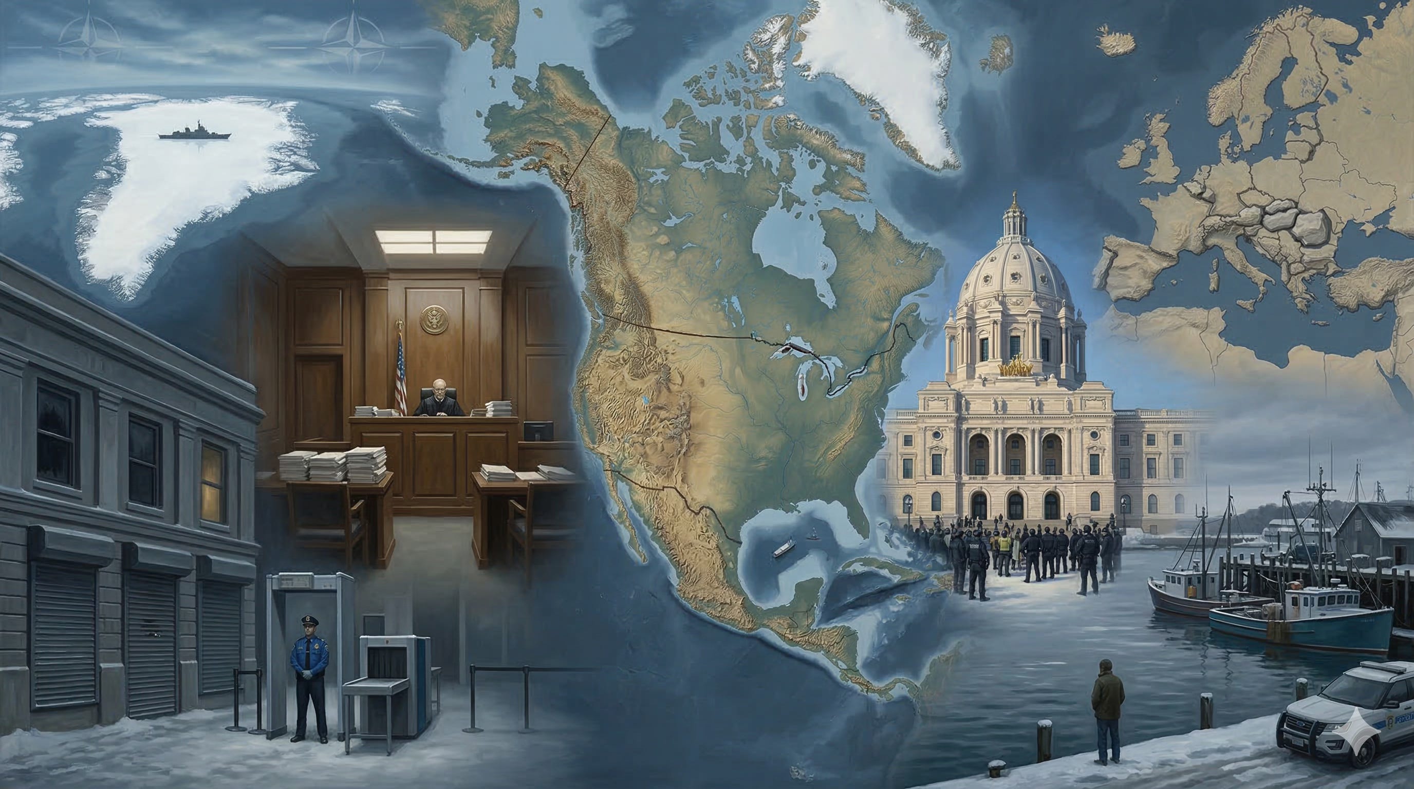 This edition tracks that ground across thirteen sections. The federal-state relationship over immigration has entered a new phase, not the surge phase, but the aftermath phase, which in some respects is harder to read and more durable in its effects. Canada is back at the trade table for the first time since October, but the table has changed. Greenland is no longer a provocation; it has become a negotiating position. And Europe is spending money on its own defense at a pace that suggests it has drawn conclusions about American reliability that no diplomatic communiqué will easily undo.